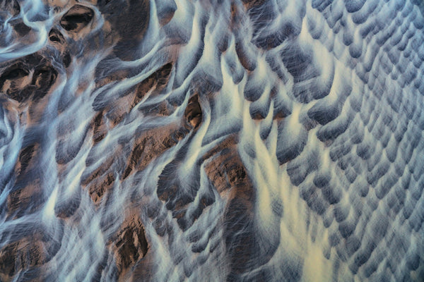 The unique appearance of Iceland’s glacial rivers is a result of the dynamic processes involving the melting ice from glaciers, which carry sediments and minerals that contribute to the vibrant colors and intricate patterns. The interplay of sediment-laden water with the landscape creates breathtaking aerial views that resemble abstract paintings, capturing the essence of nature's artistry.